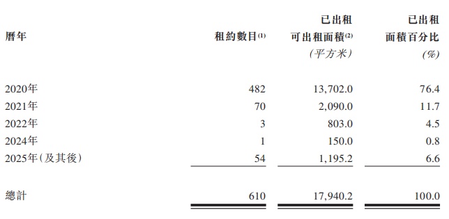 公司的标准租赁协议的固定期限为四至六年之间及20年。交易中心于2019年12月31日有610名租户。租户包括一批工量刃具行业内的制造商、供应商、分销商及批发商。