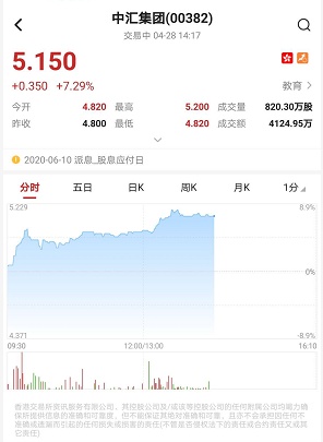 智通财经APP获悉,中汇集团(00382)近期发布中期业绩,净利同比增58.2%至1.47亿人民币,超市场预期,获天风证券唱好。截至14时17分,涨7.29%,报价5.15港元,成交额4125.95万。