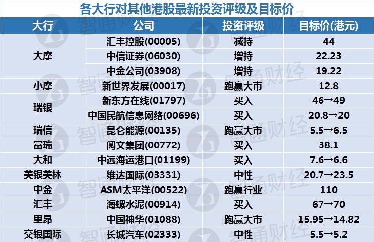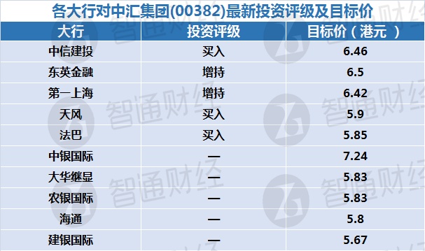 二、各大行对中汇集团(00382)最新投资评级及目标价
