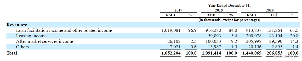 在其营收当中,来自于贷款及其他相关收入占总营收的63.5%,占比连续两年下降,2018及2017年分别占比为84%及96.9%,租赁服务收入占总营收的20.8%、售后服务收入总营收的14.3%,均连续两年上涨。