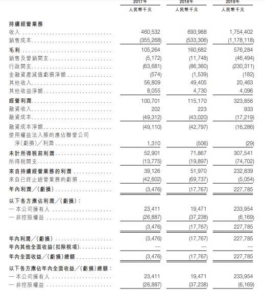 于往绩记录期间,2017-2019年收入分别约为人民币4.61亿元、人民币6.94亿元及人民币17.54亿元。于往绩记录期间,该企业的大部分收入来自该企业所提供的物业管理及增值服务,占企业收入的76%以上。