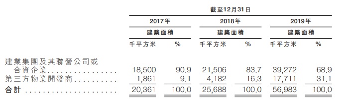 2017年至2019年,建业新生活的在管建筑面积分别为2036.1万平米、2568.8万平米、5698.3万平米,来自母公司的管理面积占比分别为90.9%、83.7%、68.9%。于往绩记录期间,该企业的平均物业管理费有所增长,该企业将17个项目的物业管理费率平均提高约41.8%。