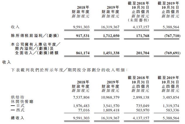 招股书显示,新加坡美食控股有限公司为一间新加坡多品牌餐饮集团,在2018年为新加坡第七大手工烘焙连锁店(按收入计),占手工烘焙连锁店市场份额约2.1%。