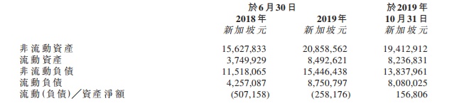 于2018年及2019年6月30日,流动负债净额分别约为50.72万新加坡元及25.82万新加坡元。于2019年10月31日,流动资产净额约15.68万新加坡元。