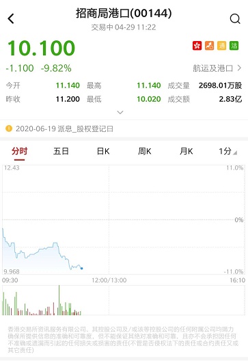 智通财经APP获悉,招商局港口(00144)盘中发布澄清公告,公司并不知悉有关媒体推测之任何相关资料,亦无任何应披露但尚未披露之资料。截至发稿,招商局港口跌10.18%,报10.06港元,成交额2.87亿港元。