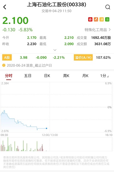 智通财经APP获悉,上海石化(00338)发布一季度业绩,公司营业收入179.26亿元人民币,同比减少28.68%;归属于母公司股东的净亏损12.02亿元,上年同期盈利6.1亿元。一季度石油产品销售收入同比降18.2%至97.03亿元。截至发稿,上海石化跌5.83%,报2.1港元,成交额3631.08万港元。