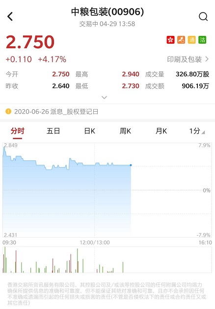 智通财经APP获悉,中粮包装(00906)公布,加多宝集团积极与集团洽商并已支付人民币2.5亿元诚意金予集团,双方达成回购协议以妥善解决纠纷。集团将收回前期于清远加多宝草本中作出的全部投资款项及承诺分红。该股早盘一度涨超7%,截至发稿,涨4.17%,报2.75港元,成交额907.29万港元。