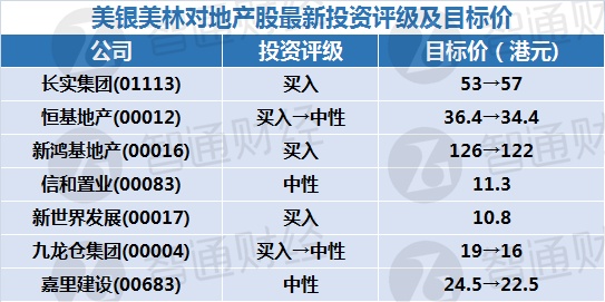 智通财经APP获悉,美银美林发布报告称,更新对地产股最新投资评级及目标价,如下表: