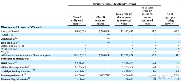 KKR基金持有6,826,263股A类普通股,持股比例为12.5%,享有5.7%的投票权。