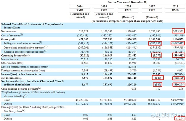 营业费用在2018年同比增长51.6%至17.6亿人民币,占营收84.5%;其中,销售和营销费用同比增长48.1%至10.48亿人民币,占营收50.2%。