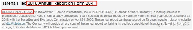 智通财经APP获悉,达内科技(TEDU.US)于4月24日向SEC提交了截至2018年12月31日的20-F年度报告,披露了2018年业绩和最新股权变动。