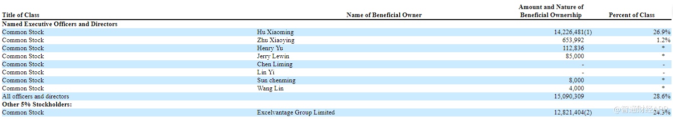 股权方面,截至2020年4月23日,以公司发行在外并流通的52,849,441股普通股计算,创始人兼CEO胡晓明名下共计持有14,226,481股普通股,占比26.9%,为公司第一大股东。
