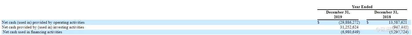 截至2019年12月31日,公司实现经营活动现金流净流出2988.6万美元;投资活动现金流净流入3125.3万美元;筹资活动现金流净流出698.1万美元。