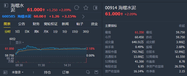 该行称,由4月至今海螺水泥的日出货量有所改善,故该行上调其今年销量增长预测,由3.06亿吨升至3.2亿吨,相信第二季销量复苏可抵销首季受公共卫生事件的影响,因此,该行上调今年盈利预测4.2%,目标价相应由66.7港元升至69.5港元,重申“买入”评级。