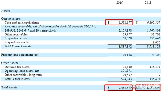 截至2019年12月31日,公司总资产为943万美元,同比增长6%;持有现金和现金等价物为655万美元;总负债为93.4万美元,2018年为71.3万美元。