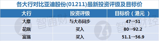 三、各大行对比亚迪股份(01211)最新投资评级及目标价