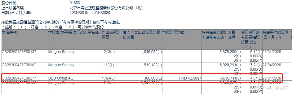 智通财经APP获悉,联交所最新资料显示,4月22日,瑞银减持春立医疗(01858)30万股,每股作价42.9897港元,总金额约为1289.69万港元。减持后最新持股数目约为463.67万股,最新持股比例为4.84%。
