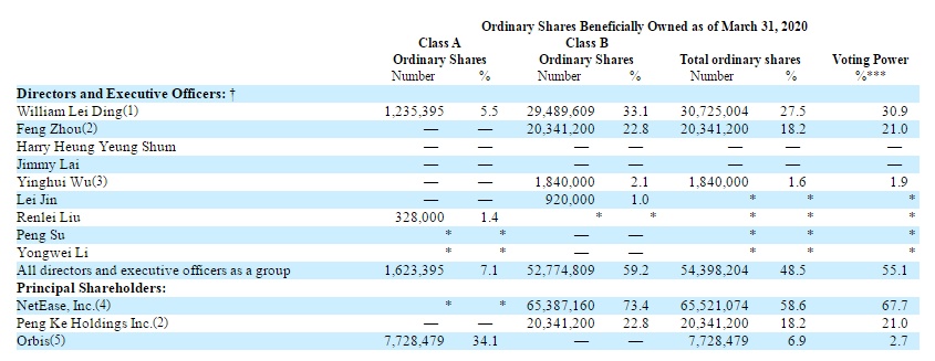 网易(NTES.US)首席执行官丁磊持有有道27.5%的普通股,投票权为30.9%。