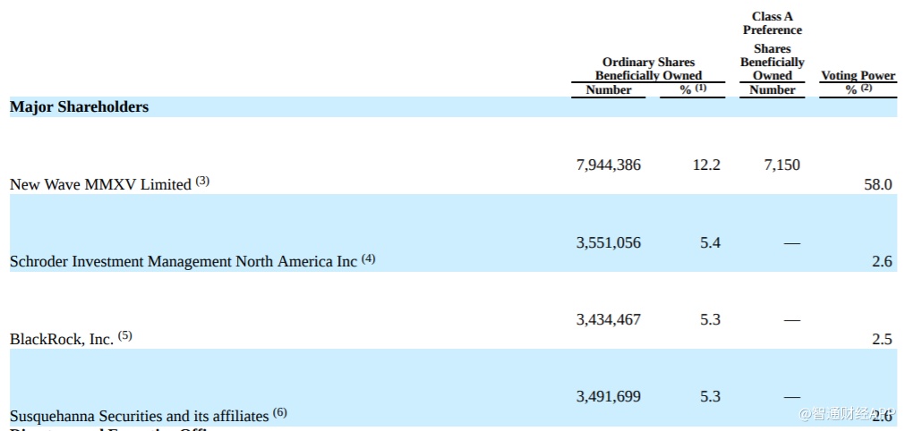 Schroder Investment Management North America Inc为公司第二大股东,持有公司3,551,056股普通股,占比5.4%,投票权为2.6%。