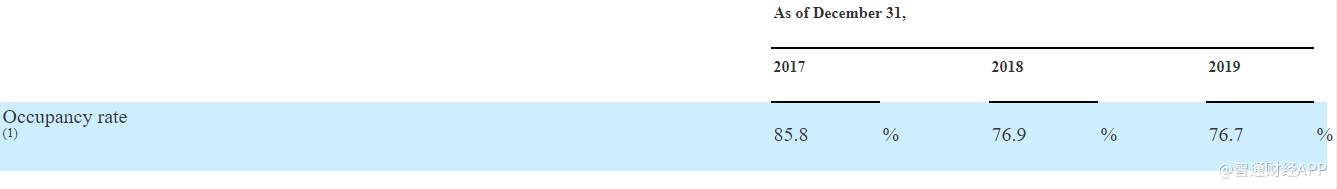 出租率在2019年为76.7%,不及2018年的76.9%及2017年的85.8%。