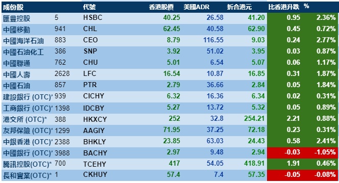 智通财经APP获悉,周三美股表现强劲,港股ADR指数跟随走高,按比例计算,收报24822点,涨178.78点或0.72%。