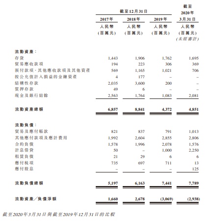 公司流动负债净额于截至2019年12月31日及2020年3月31日分别为人民币30.69亿元及人民币29.38亿元,维持相对稳定。截至2020年3月31日(即确定公司债项的最后日期),其总共有银行授信人民币87.45亿元,其中未动用且不受限制的银行授信额为人民币59.60亿元。