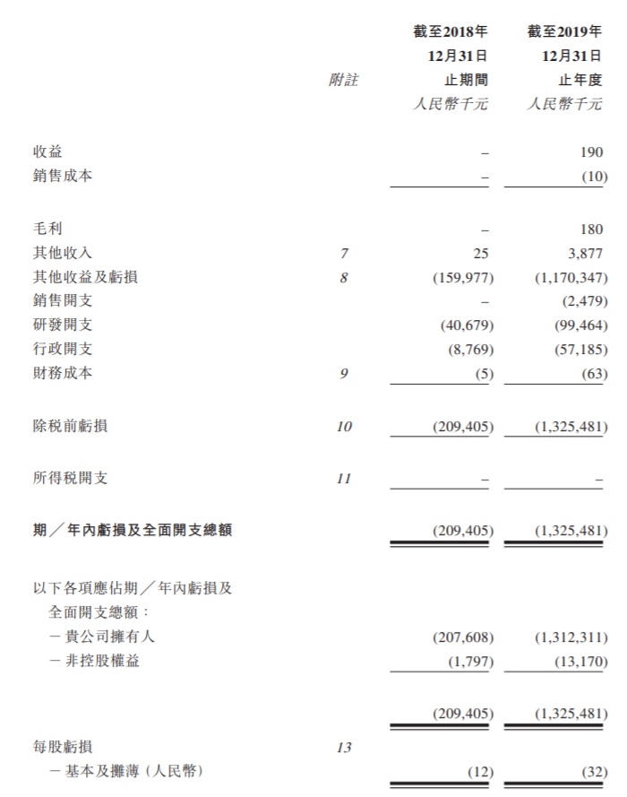 其他收入:其他收入指银行存款的银行利息收入。于2018年及2019年,公司的银行利息收入分别为人民币25000元及人民币387.7万元。