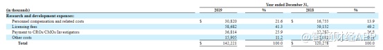 在截至2019年12月31日的年度内,临床项目和临床前项目的研发费用分别占研发费用总额的67.8%和5.8%,2018年该比例分别为74.5%和6.7%。
