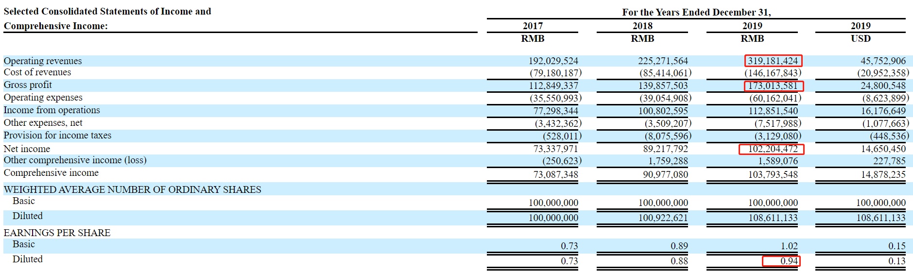 根据年报,微美全息2019年营收3.19亿元(人民币,下同),较2018年的2.25亿元增长41.7%。毛利润1.73亿元,2018年为1.4亿元。经营利润为1.13亿元,2018年为1亿元。净利润为1.02亿元,较2018年的0.89亿元增长14.6%,摊薄每股收益0.94元,2018年为0.88元。