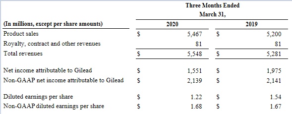 智通财经APP获悉,吉利德科学(GILD.US)公布2020年Q1业绩显示,第一季度营收55.5亿美元,同比增加5.1%,略好于市场预期的54.52美元;
