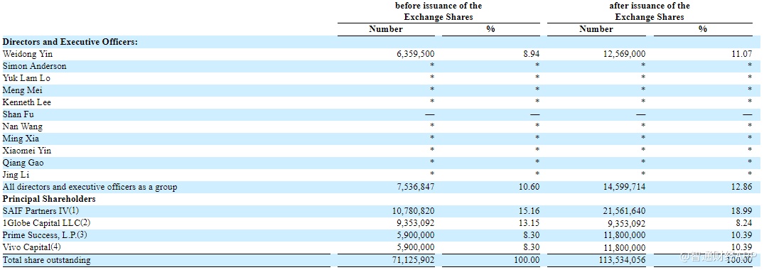 此外,根据2017年6月27日向SEC递交的13D文件显示,SAIF Partners IV在股票发行后的持股数为21,561,640股,占比为18.99%。