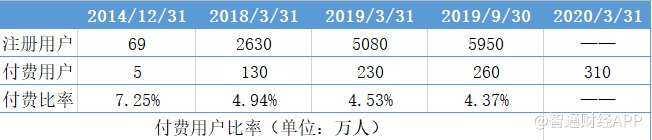 随着注册用户的增长,付费会员的数量也稳步提升,从2014年12月31日的5万人增至2018年3月31日的130万人,再增至2019年9月30日的260万人。