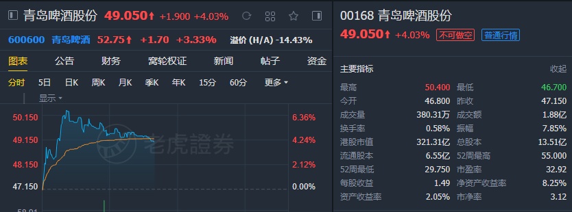 智通财经APP获悉,美银美林发布报告称,青岛啤酒股份(00168)首季业绩高于预期,且表现较同行优胜,据相关调查,该行相信青啤4月份销售有强劲增长,且有机会于5月会加价,还称复苏势头稳固。