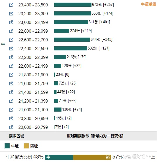 智通财经APP获悉,截至5月4日,恒指最新的牛熊街货比例43:57。摩根恒指牛熊证街货分布图中的数据显示,熊证街货重货区在25100-25299区间,该区间最新熊证数量为994张,较上一交易日减少442张,最多新增区间在24500-24699区间,该区间最新熊证数量为272张,新增272张。牛证街货重货区在23400-23599区间,该区间最新牛证数量为673张,较上一交易日增加257张,最多新增区间在23000-23199区间,该区间最新熊证数量为611张,新增401张。