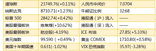1、美股周一先跌后回升,道指早段最多曾跌362点,其后持续回稳,收报23749点,升26点或0.11%;标普500指数收报2842点,升12点或0.42%;纳指收报8710点,升105点或1.23%。港股ADR指数全日微跌,按比例计算,收报23579点,跌33.61点。