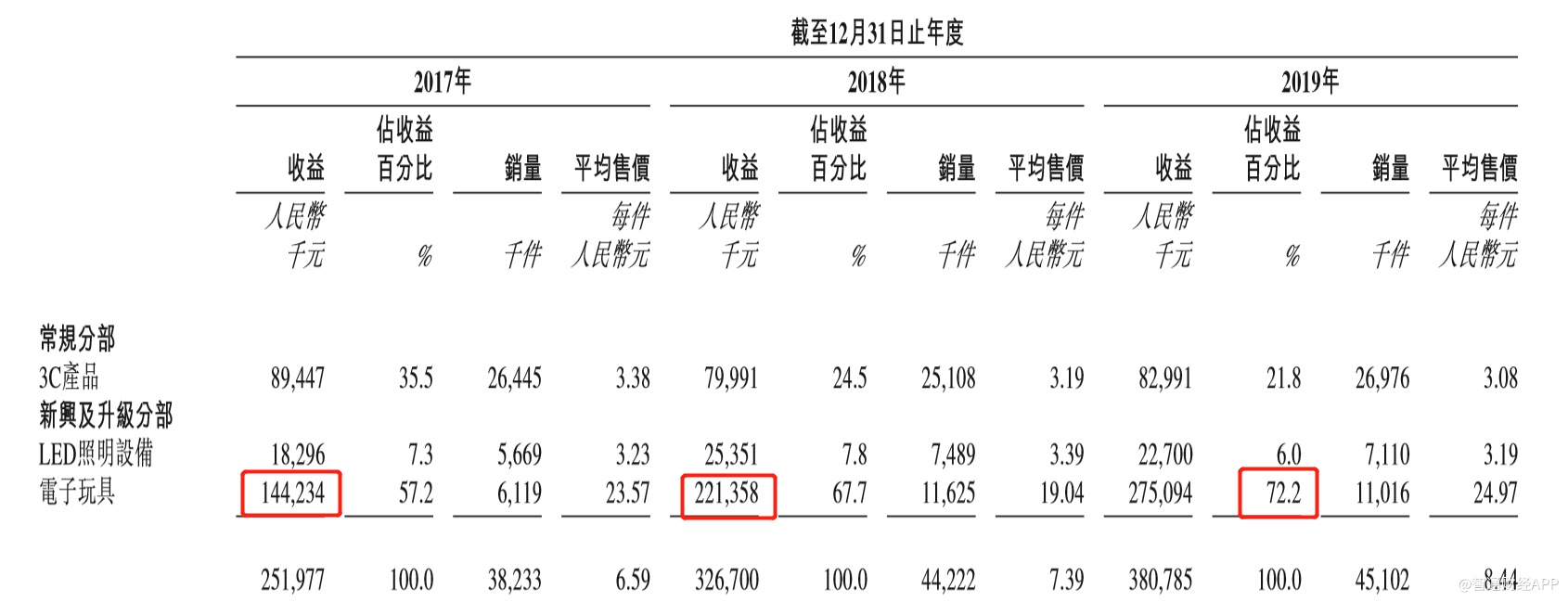 从下游数据看,与灿辉新能源渊源颇深的电子玩具领域的市场需求旺盛,来自电子玩具的收入占比从2017年的57.2%增至2019年的72.2%。电子玩具市场是带动灿辉新能源收入增长的主要动力。