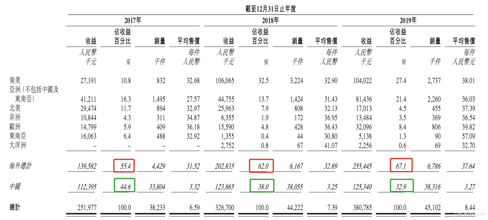 从地域上看,灿辉新能源近三年来更注重海外市场的发展。国内收入占比从2017年的44.6%逐步下降至2019年的32.9%。与之相反,海外市场的收入占比则从2017年的55.4%稳步上升至2019年的67.1%。其中,南美和亚洲是灿辉新能源海外的“主战场”。