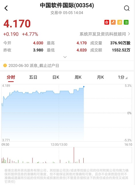 据联交所最新权益披露资料显示,2020年4月24日,中国软件国际(00354)获UBS Group AG在场内以每股均价4.1653港元增持好仓452.2万股,涉资约1883.55万港元。增持后,UBS Group AG最新好仓持股数目为266,044,430股,持好仓比例升至10.14%。