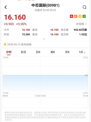 智通财经APP获悉,中芯国际(00981)昨日(5月5日)发布公告,拟于科创板发行不超过16.86亿股股份,募资用于12英寸芯片SN1项目。该股早盘跳空高开,截至9时22分,涨5.9%,报价16.16港元,成交额1.52亿。