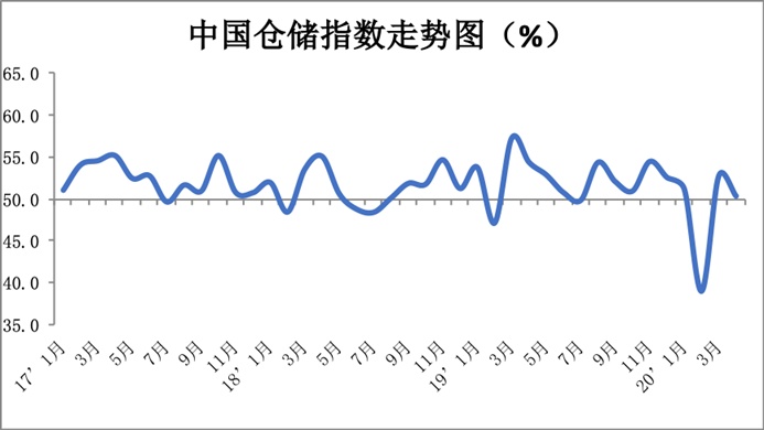 中国物流与采购联合会发布的2020年4月份中国物流业景气指数为53.6%,较上月回升2.1个百分点;中国仓储指数为50.3%,较上月回落2.4个百分点。