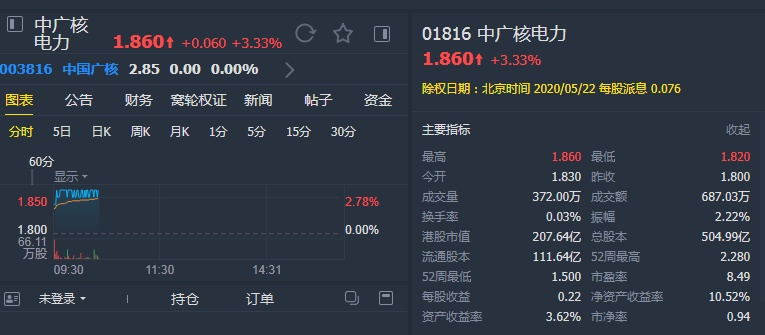 大和还称,控股股东中广核集团于三月买入297万股公司H股,同时也称有意于未来12个月继续买入,相信会有助公司股价。大和同时将公司2020-2021年每股盈利预测削6%-8%,以反映毛利率下降,以及增值税退税优惠减少。