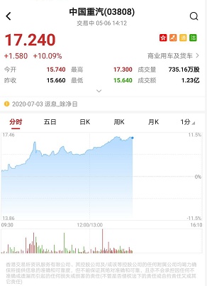 智通财经APP获悉,4月份重卡销售同比增长52%至18万辆,环比增长50%。重卡概念全线走强,中国重汽(03808)午后涨幅扩大至10%,截至14时12分,涨10.09%,报价17.24港元,成交额1.23亿。