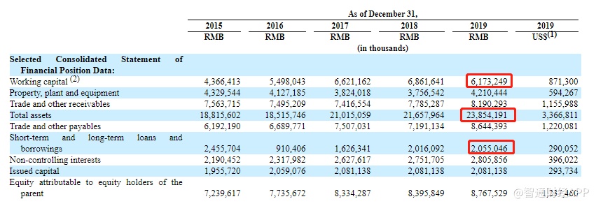 截至2019年12月31日,公司的总资产共238.5亿元(约合33.7亿美元),去年同期为216.6亿元;营运资本(流动资产减流动负债)为61.7亿元(约合8.7亿美元),去年同期为68.6亿元;短期及长期贷款及借款余额为20.55亿元(约合2.9亿美元)。