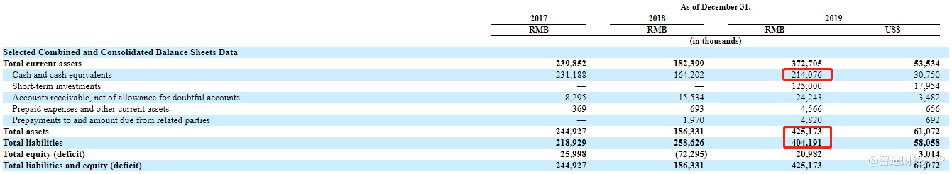 截至2019年12月31日,公司的总资产为4.25亿元(约合6107.2万美元),去年同期为1.86亿元;现金及现金等价物为2.14亿元(约合3075万美元),去年同期为1.64亿元;总负债为4.04亿元(约合5805.8万美元)。
