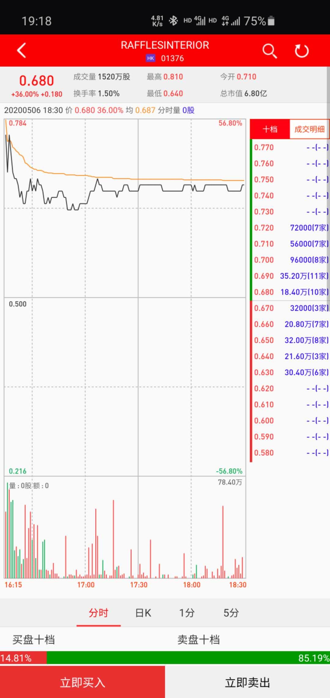 智通财经APP获悉,RAFFLESINTERIOR(01376)将于5月7日挂牌,截至暗盘收盘,利弗莫尔证券暗盘交易显示其报价0.68港元,较招股价0.5港元涨36%。每手8000股,不计手续费,每手赚1440港元。