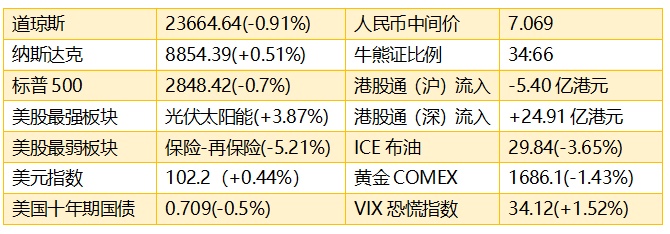 1、美国公布的“小非农”ADP报告显示,由于卫生事件导致美国经济大部分地区无法运转,企业纷纷裁员,4月ADP减少2023.6万人。截止收盘标普500指数跌20点,跌幅0.7%,报2848.42点;纳指涨45.3点,涨幅0.51%,报8854.39点;道指跌218.5点,跌幅0.91%,报23664.64点。港股ADR指数全日受压,按比例计算,收报23900点,跌237.45点或0.99%。