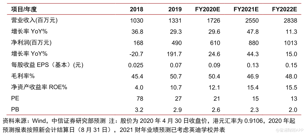 1))新并购境外本科学院:公司2020年2月宣布收购马来西亚英迪学校,4月28日获得联交所无异议批复,预计2020财年年底进行财务并表,并表后将带来在校生人数16,557人,2019年学费收入高达4.9亿。未来随着持续并购推进和已有标的的深入整合,具备持续增长空间。