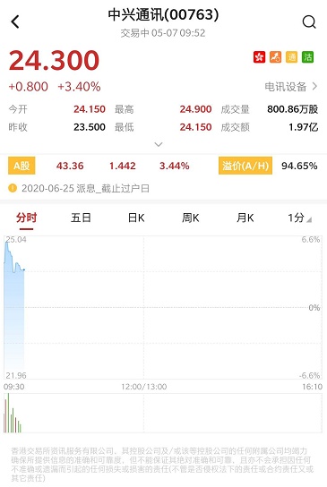 智通财经APP获悉,据媒体报道,美国商务部接近签发一份新规,以允许美国企业和华为共同参与5G网络标准的制定。A股5G板块爆发,H股中兴通讯(00763)盘中涨近6%。截至发稿,中兴通讯涨3.62%,报24.3港元,成交额2亿港元。