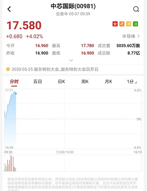 智通财经APP获悉,中芯国际(00981)获中信证券上调目标价至21.58港元,维持“买入”评级。该股延续涨势,早盘创近三个月新高,截至9时59分,涨4.02%,报价17.58港元,成交额8.77亿。