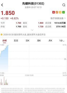 智通财经APP获悉,先健科技(01302)早盘高开高走,股价快速上扬,突破多条均线,截至10时13分,涨8.82%,报价1.85港元,成交额2731.98万。